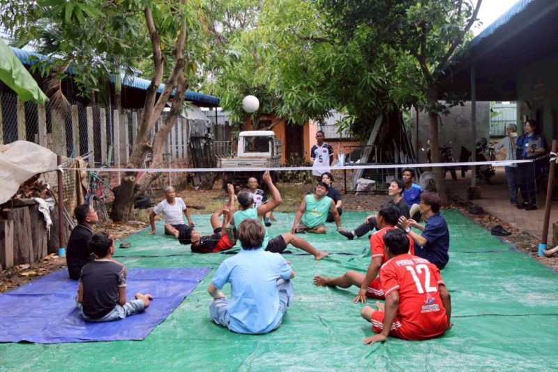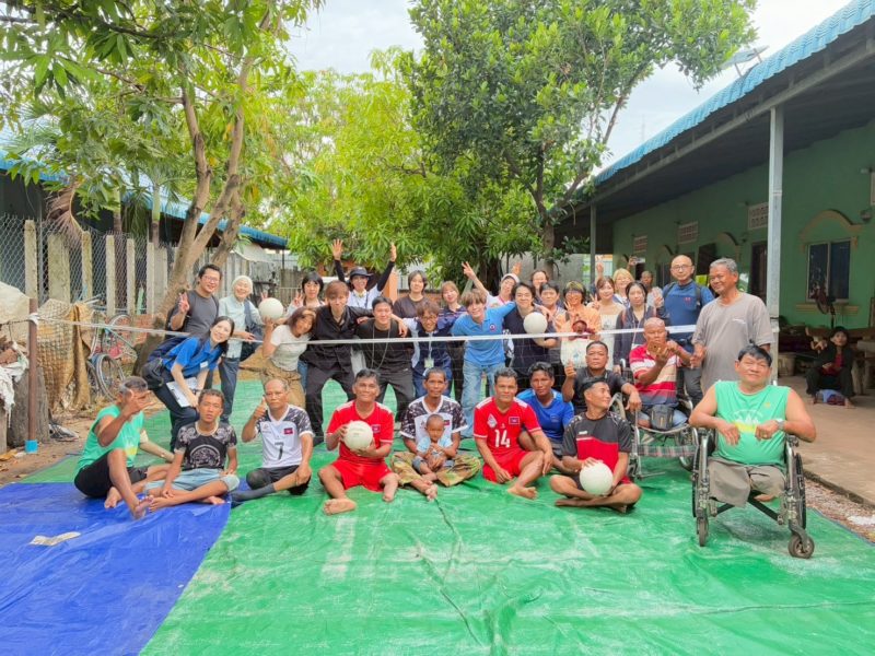 ソワンタさんの話の後、AADが力を入れているシッティングバレーを行いました。私たちも地雷被害に遭った方もみんな笑顔で全力で楽しんで参加していました。